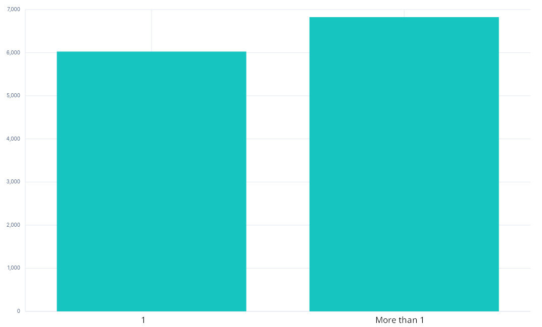 This time the graph shows how many downloads projects with over 1 million downloads, and one maintainer or more than one maintainer. It was easier to show the data by creating these two buckets.