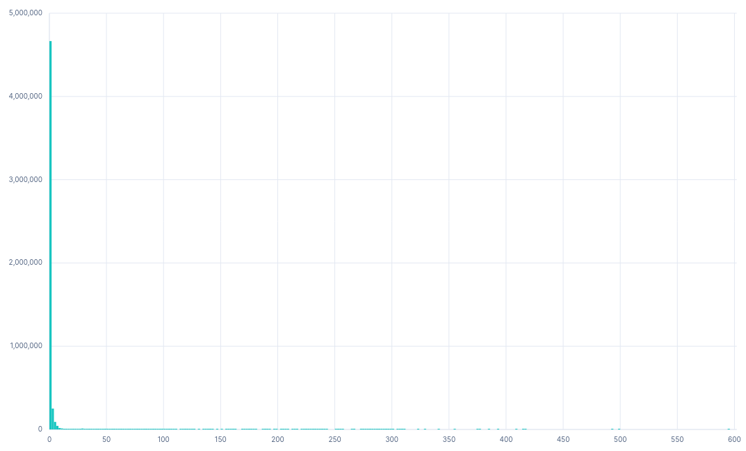 So we’re going to use the NPM ecosystem to explain this. I use NPM because they have the richest data in ecosyste.ms to explain my point. I’ve done this same thing across multiple ecosystems and the graphs all look the same.